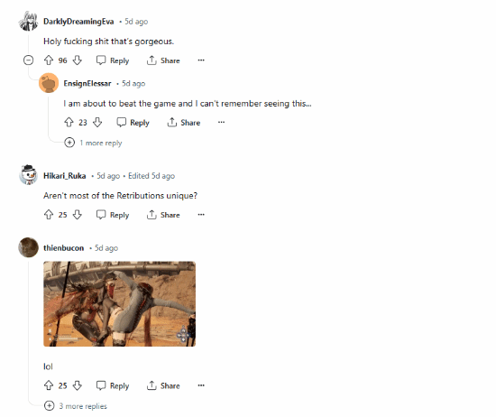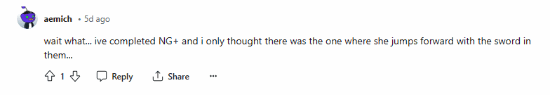 在论坛的评论区中,有很多玩家纷纷表示,自己在游玩《剑星》的途中并没有看到该动画,甚至在“新游戏+”模式中也是如此。但也有玩家表示自己早就发现了该动画的存在,且已经触发多次,目前尚未知晓原因。