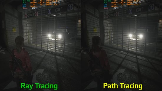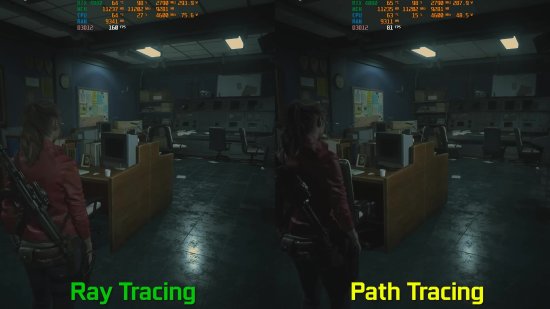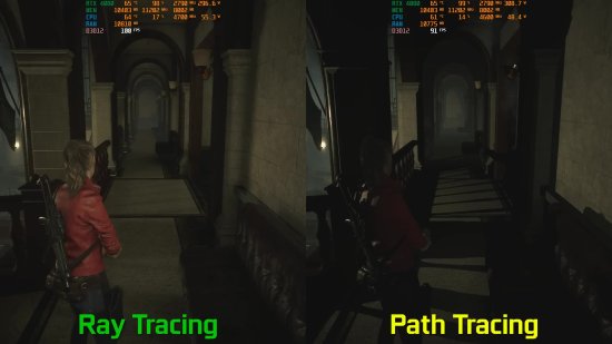 《生化危机2:重制版》,以及由RE引擎驱动的系列中的其他作品,最近获得了一个路径追踪Mod,这大大提高了游戏在某些场景下的视觉效果。尽管性能遭受极大打击,但画面提升确实明显。