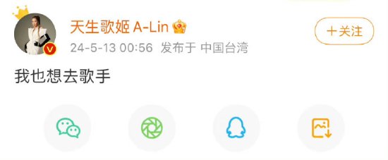 近日,《歌手2024》以“直播竞演”的形式开播,外国选手香缇莫、凡希亚分别获得第1名和第2名,内地歌手那英获得第3名。之后,韩红也申请出战,参加节目。今日,中国台湾歌手黄丽玲A-Lin发文称“我也想去歌手”,话题登上微博热搜。