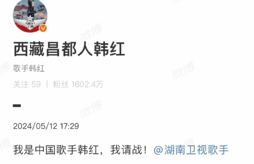 日前,韩红在微博发文请战《歌手2024》,“我是中国歌手韩红,我请战! ”并艾特了湖南卫视歌手官方。
