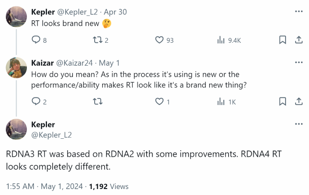 需要提及的是,有消息称PS5 Pro的GPU部分将会是一个特别定制版,基础架构为RDNA3,但光追部分却来自RDNA4,该消息也可以从侧面证明与RDNA3相比,RDNA4架构在光追性能方面或将拥有幅度不小的提升。