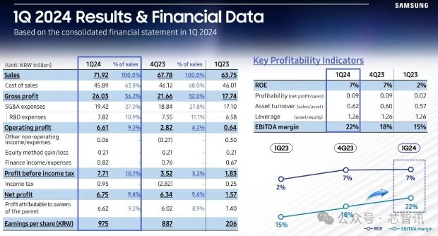 财报显示,在2024年一季度,负责半导体业务的设备解决方案(DS)部门合并营收达23.14万亿韩元,相比去年同期的13.73亿韩元大涨68.54%;营业利润已由去年同期的亏损4.58万亿韩元(约合人民币239.53亿元)转为盈利1.91万亿韩元(约合人民币99.89亿元)。这也是该部门自2022年第四季度以来首次达到获利目标。