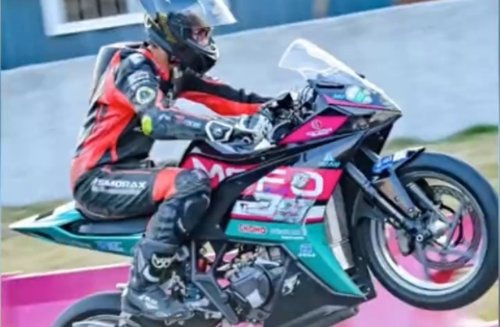 近日,福建厦门。“草根车手”郭小蓬在红珊车王摩托车邀请赛上,在与专业车手巨大装备差距下,拿下了新秀冠军。