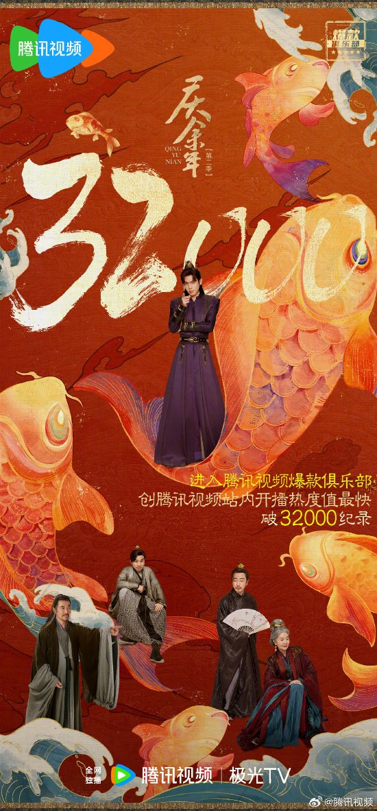 ·《庆余年2》开播126分钟热度值破32000,创腾讯视频站内开播热度值最快破32000纪录!