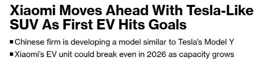 知名外媒:小米正开发第二款电车 类似特斯拉ModelY