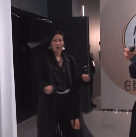 准备整活儿时夹总路过 那英歌手下班的动态图
