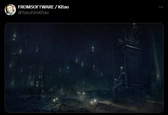 北尾泰大的动态中并没有任何配文,所以有玩家看到这张图时第一时间想到的是亚楠城。但又玩家指出这个场景曾出现在《艾尔登法环》的宣传物料中,其背景也有赐福光效。