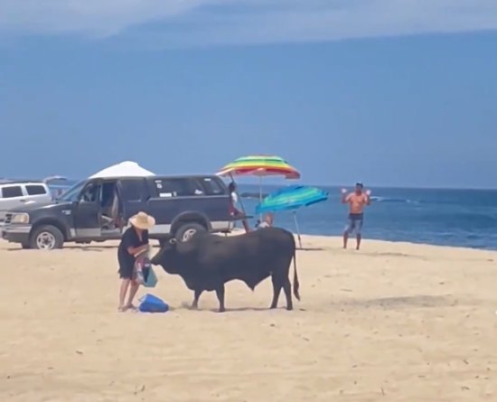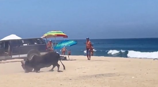 据外媒15日报道,在墨西哥的卡波圣卢卡斯,一名女性游客在海滩上被一头黑色公牛袭击。现场视频显示,一旁的围观者受到惊吓,发出阵阵尖叫。