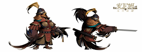 比如下方这只华彩将军,他是一只红腹锦鸡,来自于丘纽——安尼姆世界观中的中式国家,他的服饰参考了明光铠等著名中式铠甲,佩刀则借鉴了唐刀的设计。包括在技能动作和配音上,我们都希望能展现出一个威风凛凛的大将军形象。