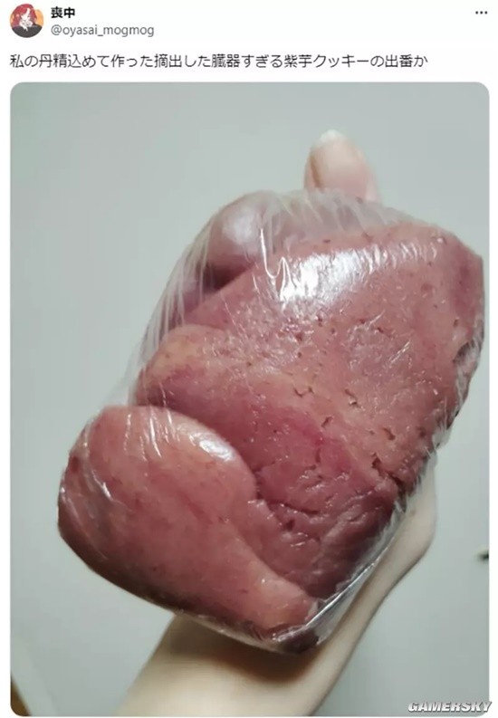 「总算可以分享我之前费尽心力做出来的内脏紫芋饼干了。」