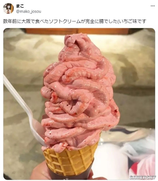 「我几年前去大坂吃的冰淇淋,看起来根本是肠子(草莓口味)」