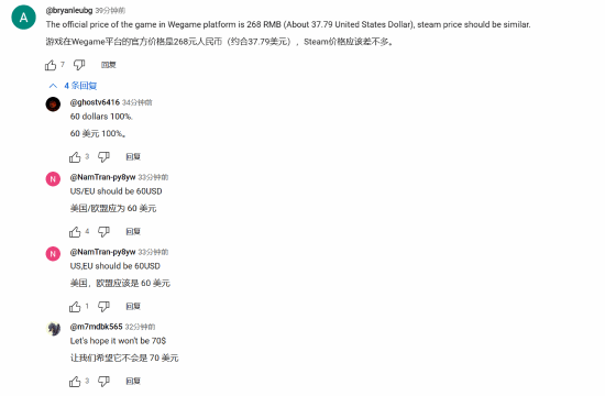 而国外网友也已经看到了游戏的新预告和游戏定价,纷纷开始猜测《黑神话:悟空》的国外版本定价。