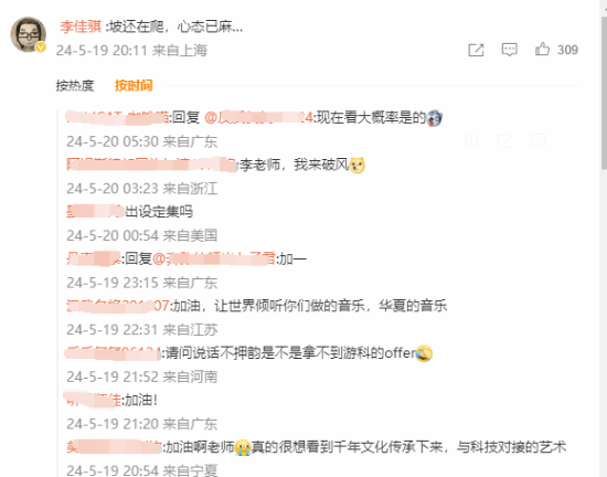 在评论区,游戏音频团队的总监李佳骐也发话了,表示“坡还在爬,心态已麻”。这意味着游戏的音效方面仍在持续优化,网友也都在回复中为其加油鼓气,期待让华夏音乐走向世界。之前,有不少网友对游戏音效提出建议,官方也是虚心接受,不断优化。