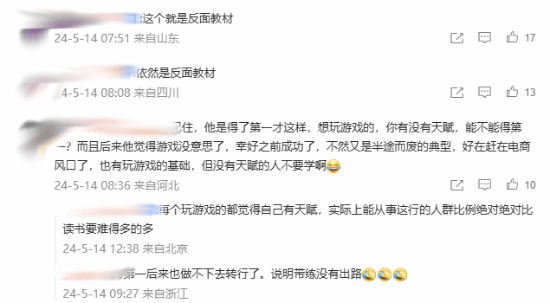 大多数网友对男孩的此次举动看法不一,有网友认为:“行行出状元,把任何一件是做到顶尖就是很强。”也有网友持反对意见,认为此事依旧是反面教材,一位网友对这件事也表达了自己详细的看法。