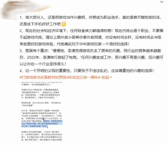 我们此前曾报道一名19岁游戏男孩赚钱后送父亲车的事例,而今日,话题“打游戏被当反面教材的男孩4年后送父亲一辆车”也登上了微博热搜。