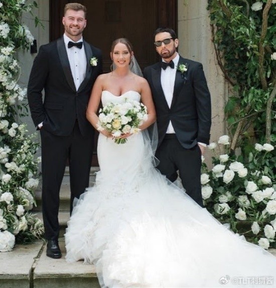 他们在密歇根州巴特尔克里克市举行了一场私密婚礼,51岁的埃米纳姆出席,在现场还与女儿共舞了一段,一位超酷的岳父!与此同时,最疼爱她的50 Cent叔叔也出席了婚礼。