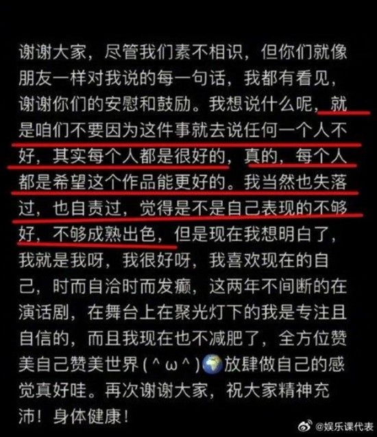 她本人在社交媒体上的回应流露出失落与自省,表达了对失去角色机会的在意。“我当然也失落过,自责过,是不是我表现的不够好。还直言不要因为换角这件事去说任何人不好。”