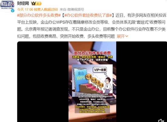 据财经网报道,近日,有许多网友在相关投诉平台上反映,金山办公WPS存在着随意修改会员等级、会员体系无限“套娃式”收费等问题。