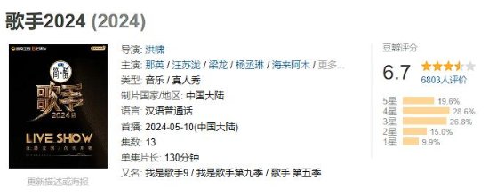 《歌手2024》豆瓣6.7分 网友:草莓音乐节大战格莱美