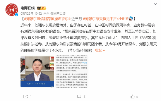 刘强东微信群跨国操盘京东 每天睡觉不足4小时