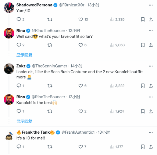 调查放出后,很多玩家纷纷在评论区中给出了自己心目中的分值。可以看到,大部分的玩家都给了10分的满分,少数玩家更是给到了诸如“100分/1000分”的夸张分值,可见这两套服装的受欢迎程度。