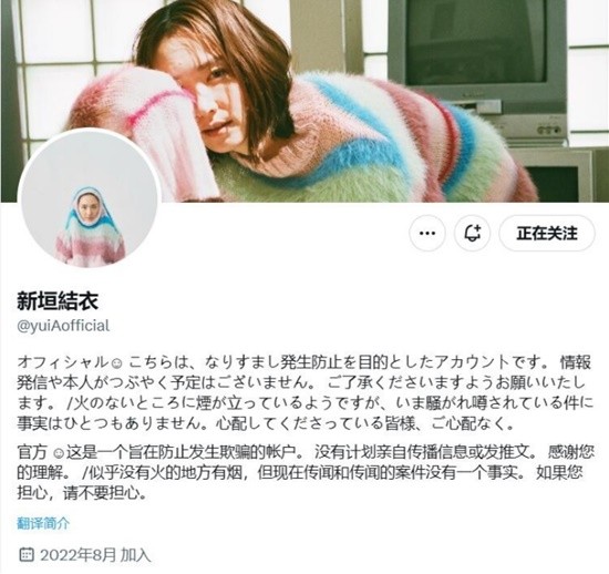 另外,新垣结衣也在其本人的推特个人简介上进行了更新称:“在没有火的地方冒起了烟,目前的传闻没有一件是事实,各位无需担心。”