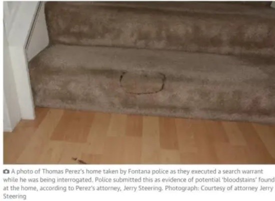 警方称,小佩雷斯家一片混乱,仿佛发生“打斗”,他父亲的手机留在了房内,此外还发现“明显的血迹”。法庭记录显示,警犬闻到了尸体的气味,随后警方对他进行长时间的审讯,使用各种手段迫使他认罪。将小佩雷斯的狗带进审讯室,告诉他狗将被送去安乐死,甚至还谎称已经找到了他父亲的尸体,尸体上有刀伤。