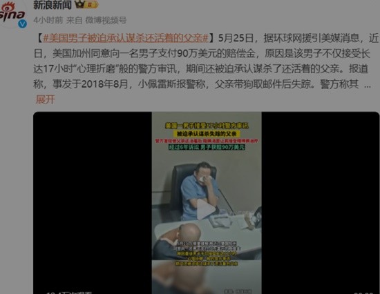 美国男子被迫承认谋杀还活着的父亲 获赔90万美元