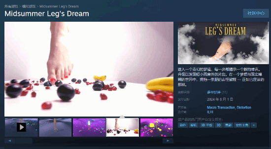 由Macro Transaction与Distortion开发,ILHI发行的解压模拟游戏《Midsummer Leg's Dream(仲夏腿之梦)》现已在Steam正式免费推出。本作可以让玩家不断的用脚进行踩踏果冻等物品,旨在为了解压并放松心情。游戏支持中文,目前的评价为“多半好评”,感兴趣的玩家可以点击下方地址查看。