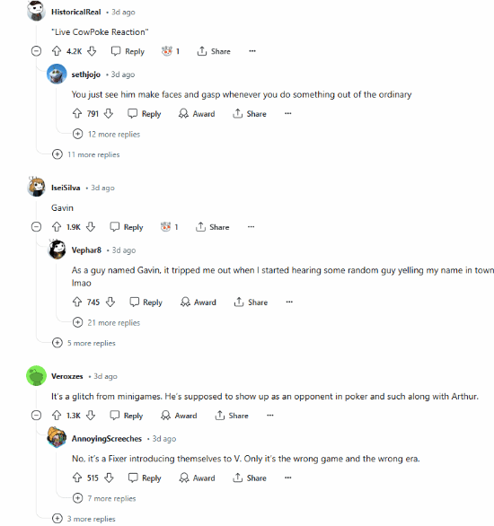 该玩家在Reddit论坛中展现了这一Bug,玩家们纷纷在评论区表示此Bug非常令人毛骨悚然。有玩家在评论区表示,这个Bug已经在游戏中出现了很长时间,且R星至今一直未能修复它,同时也有玩家用《赛博朋克2077》等游戏来调侃这一故障。