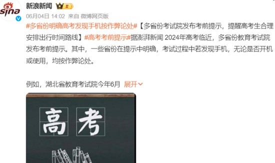考生切勿带手机!多省份明确高考发现手机按作弊论处