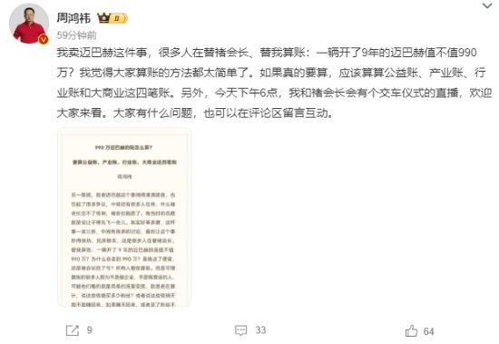 开9年的迈巴赫值不值990万?周鸿祎亲自为网友算笔账
