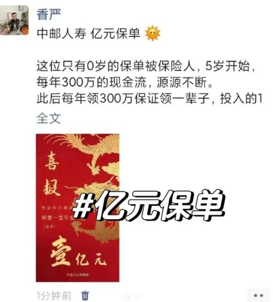 六一儿童节刚过,一张亿元保费超大单引发保险圈关注。该保单名为“邮爱一生年金保险”,是中邮人寿保险股份有限公司(下称“中邮人寿”)名下产品。