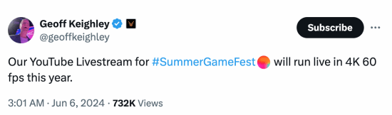 主持人Geoff Keighley表示,今年6月8日的夏日游戏节将以最高4K 60fps的规格直播。这虽然是个好消息,但也引起了不少网友调侃。