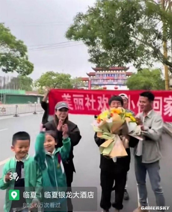 到家的那一天,亲戚、朋友和粉丝等二十余人带着鲜花,手拉着写有“美丽社欢迎小伟回家”字样的横幅,共同庆祝马伟徒步顺利抵达家乡。