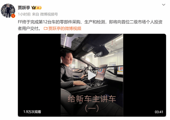 “法拉第未来已完成第12台车的零部件采购、生产和检测,即将向首位二级市场个人投资者用户“何先生”交付。”贾跃亭激动地说道。