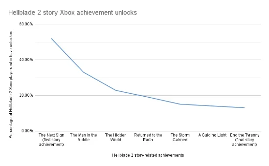 具体来看,“终结暴政”成就是一项剧情成就,在《地狱之刃2》的最后一章结束时自动解锁。解锁起来很简单,但奇怪的是,在游戏发布后的两周内,启动了《地狱之刃2》的Xbox玩家中仍有87%的人不知何故仍然没有这个成就,因此只有13%的玩家坚持到游戏结束。