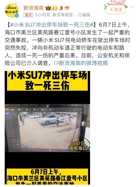 小米回应SU7停车场事故:加速踏板处于持续下踩状态