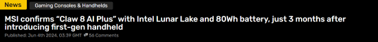 此前有消息称微星将推出一款新型号掌机。据报道,微星已经向媒体The Verge证实会在2024 Computex期间推出新型号Claw 8 AI Plus。其前代产品上市仅仅刚过去了三个月。