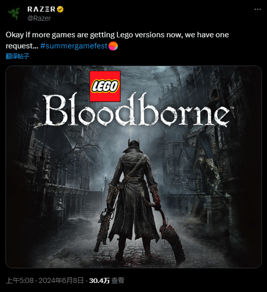玩家们对这款画风轻松有趣的冒险新作表示期待的同时,也有人希望其它索尼游戏能够乐高化。外设品牌雷蛇就发文参与了讨论,希望《血源》有朝一日也能再次被重视,“如果现在有更多游戏能获得乐高版本,我们有一个请求,希望是《血源》。”