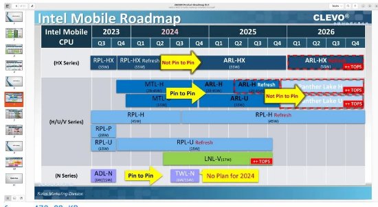 Arrow Lake-HX系列:预计在2024年第四季度或2025年第一季度发布,配备最多8个Lion Cove性能核和16个Skymont效能核,提供55W版本,并计划推出更强规格的Arrow Lake-HX Refresh版本。