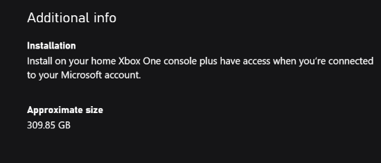 目前本作的美区Xbox商店页面已经上线,根据商店页面显示,本作在Xbox平台预计占用空间为309.85GB。