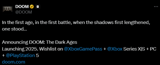新作《毁灭战士:黑暗时代》官方确认,除XboxSeries X|S和PC平台之外,游戏也将登陆PlayStation 5。