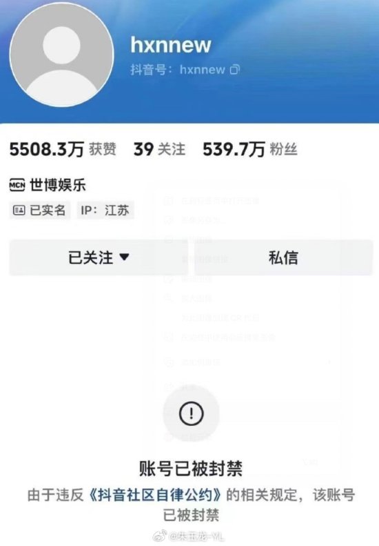 从曾关注该账号的网友提供的信息来看,账号封禁原因为“由于违反《抖音社区自律公约》的相关规定,该账号已被封禁。”