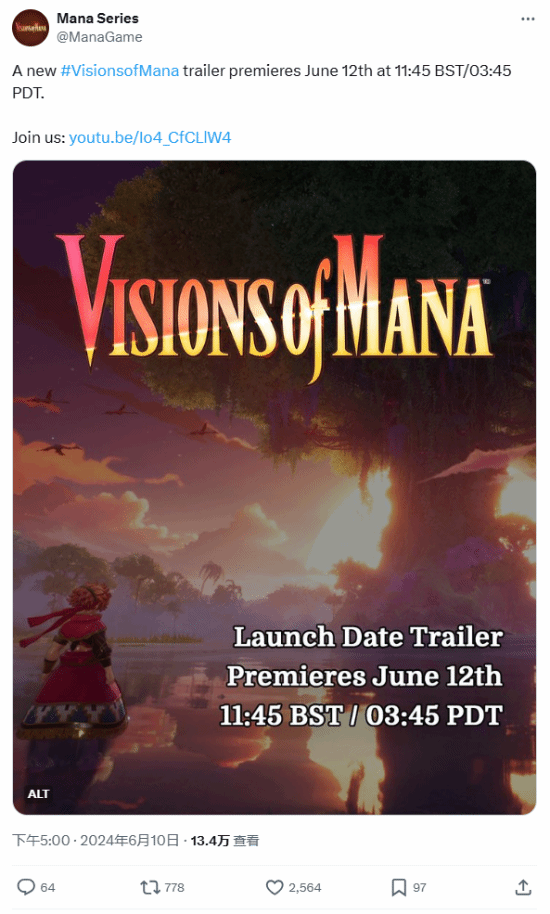 今日,SE联手网易打造的《圣剑传说》在X正式宣布,将在北京时间6月12日18点45分发布《圣剑传说》的全新预告,届时将会公布发售日期,我们一起来看一下。