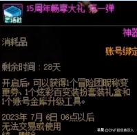 今年送的[炫彩百变装扮]为永久,还是比较不错的,毕竟之前13周年送的[炫彩百变装扮]仅有30天时效。