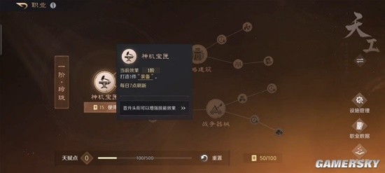 做最懂玩家的SLG当然,这种在保持SLG基本盘的同时,面向年轻群体的方针不仅展现在美术层面,更体现在游戏里一些更深层次的设计与运营上。比方说在玩家的定位上,《三谋》就创新性的引入了RPG或者MMO游戏中常见的职业设定,为游戏中安排了“镇军”“司仓”“天工”等包含有战、法、牧、辅等多种定位的职业。