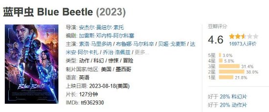 本片目前豆瓣4.6分,38%观众给出2星,21.8%观众给出1星。