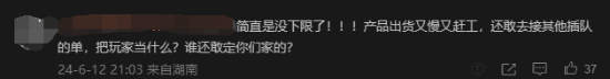 不过,评论区的氛围并不融洽,玩家们没有表示祝贺而是吐槽厂商INART效率低下,例如“出货慢”“延期时间过长”等等。