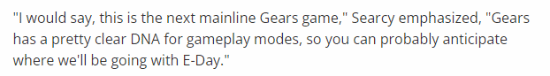 Matt表示:“我想说的是,《战争机器:事变日》是系列的下一款主线游戏,战争机器的游戏模式具有相当清晰的DNA,因此你大概可以预见到我们将在《事变日》中走向何方。”